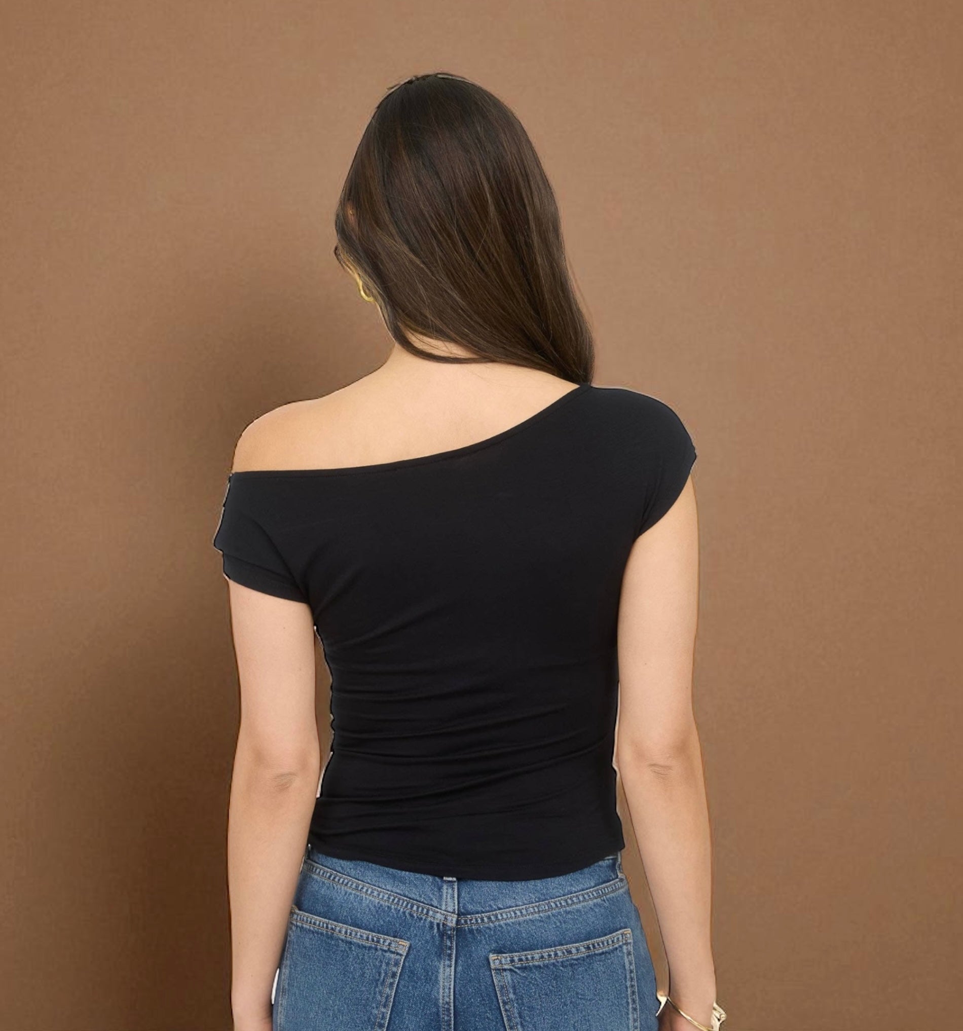 ASYMMETRICAL WRAP NECKLINE KNIT TOP