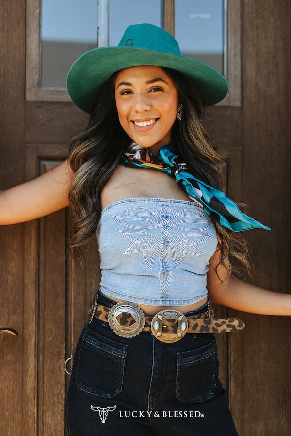 Light Wash Ivory Boot Stitching Embroidered Corset Top